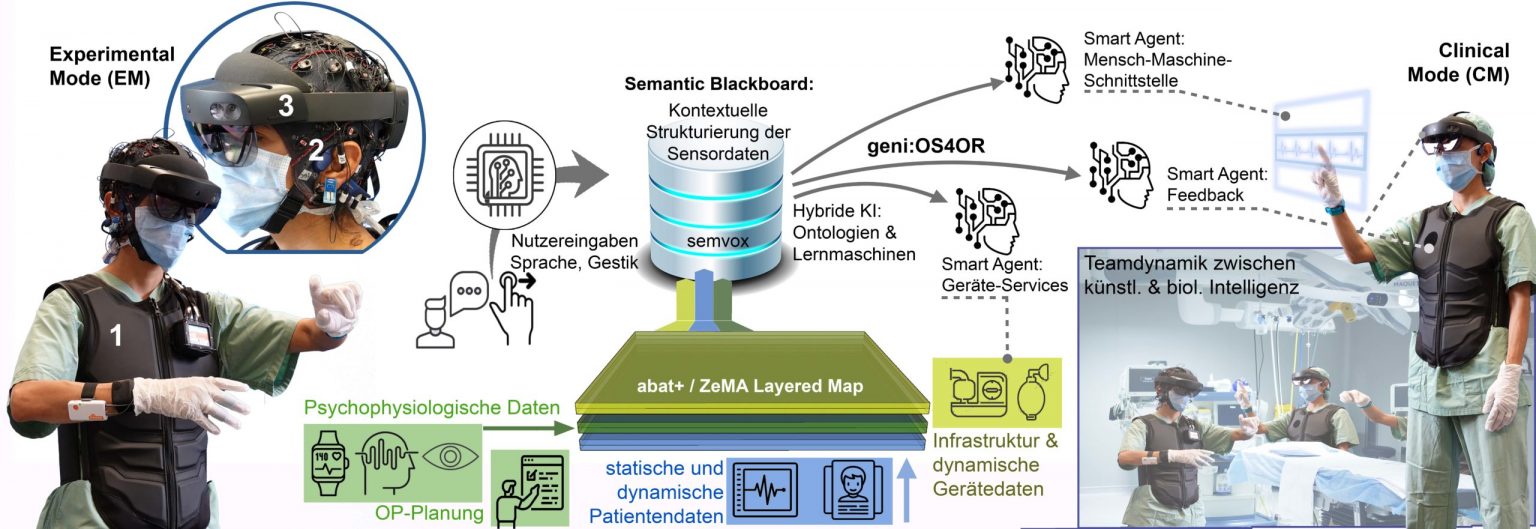 Depending on the specific task/activity and the individual cognitive and emotional state, relevant information for optimizing the surgical procedure is provided independently and context-sensitively via body-worn systems for multi- and cross-modal information transfer.