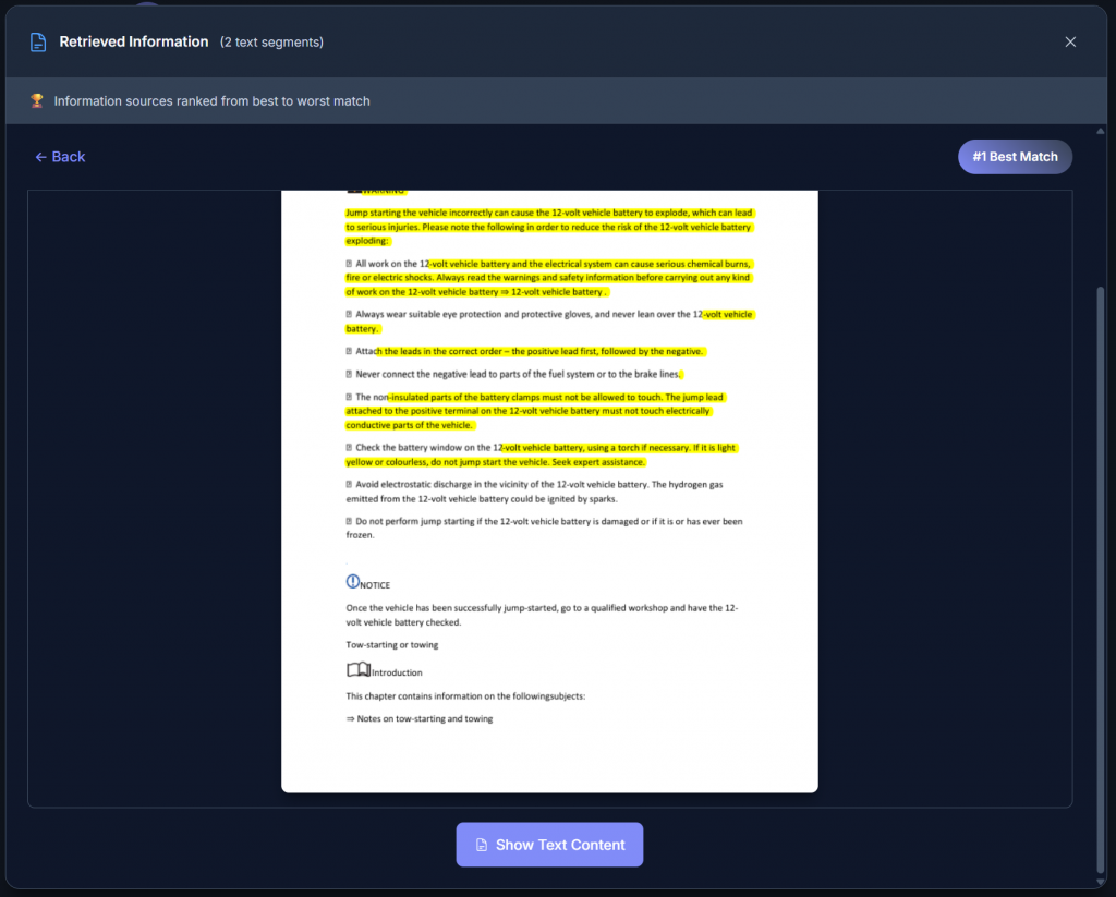 semvox explain provides the source within the document along with the answer. Simply click the button and a window will open highlighting the relevant sections used in the answer!